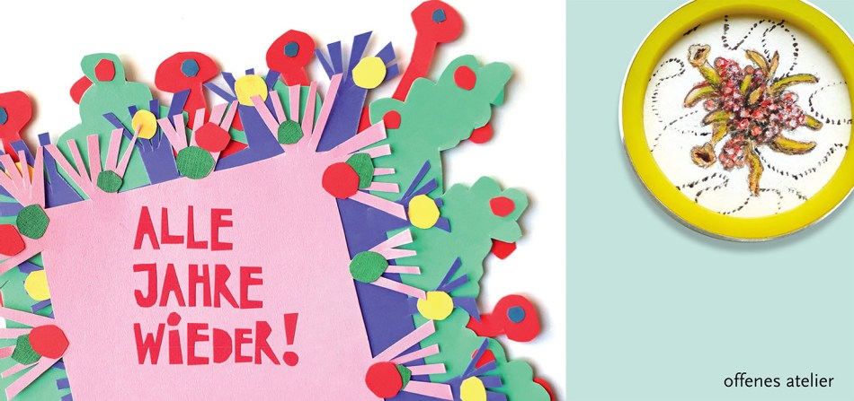 Wieder macht die Schmuckkünstlerin Haldis Scheicher für zwei Tage ihr Ateliers für eine vorweihnachtliche Verkaufsausstellung auf – neben ihren außergewöhnlichen Schmuckstücken, die diesmal Miniaturgemälde von Heidrun Widmoser in Silber fassen und mit der ‘WUNDERBRA’-Kollektion durchaus erotische Assoziationen wecken, hat sie Arbeiten der sonst in der Zacherlfabrik residierenden Schmuckdesignerin Birgit Schlarmann und der Grafikerin Christine Baumann sowie die schon traditionelle Pop-Up-Box der schnipselqueen zu Gast …